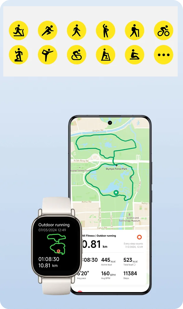 Disfruta de modos deportivos, como correr, caminar y montar en bicicleta. Sigue las indicaciones para calentar* y entrar en la fase de entrenamiento más rápido. Además, ¡únete a nuestras clases de carrera profesionales!